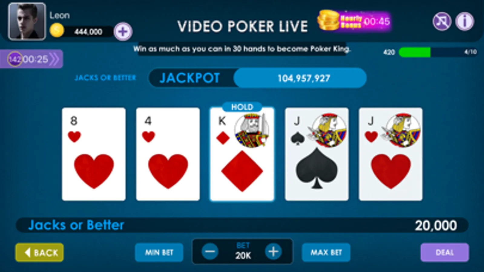 Video Poker Live by Simple Game is one of the unique video poker game that you can win JACKPOT and play with other players online!