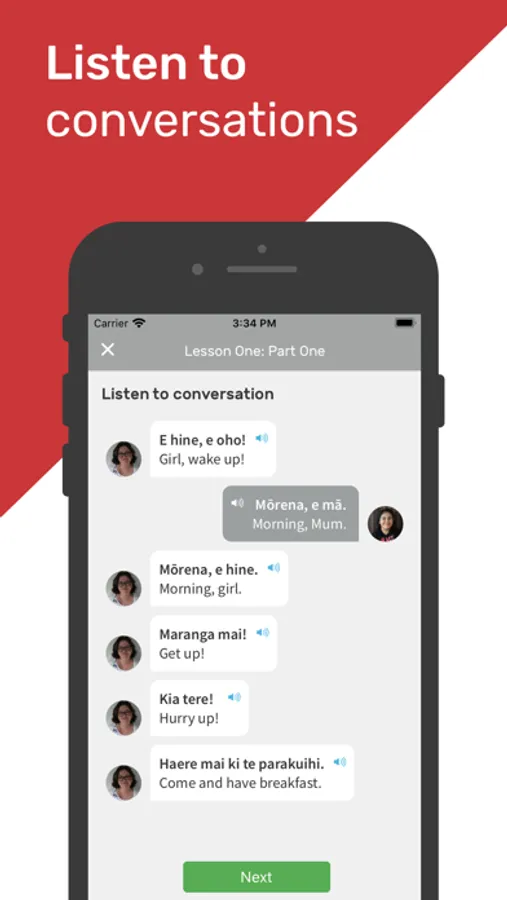 Kōrerorero meaning conversations, is an interactive learning tool developed to teach te reo Māori through listening, repetition and learning vocabulary and phrases that can be easily introduced into real life situations.