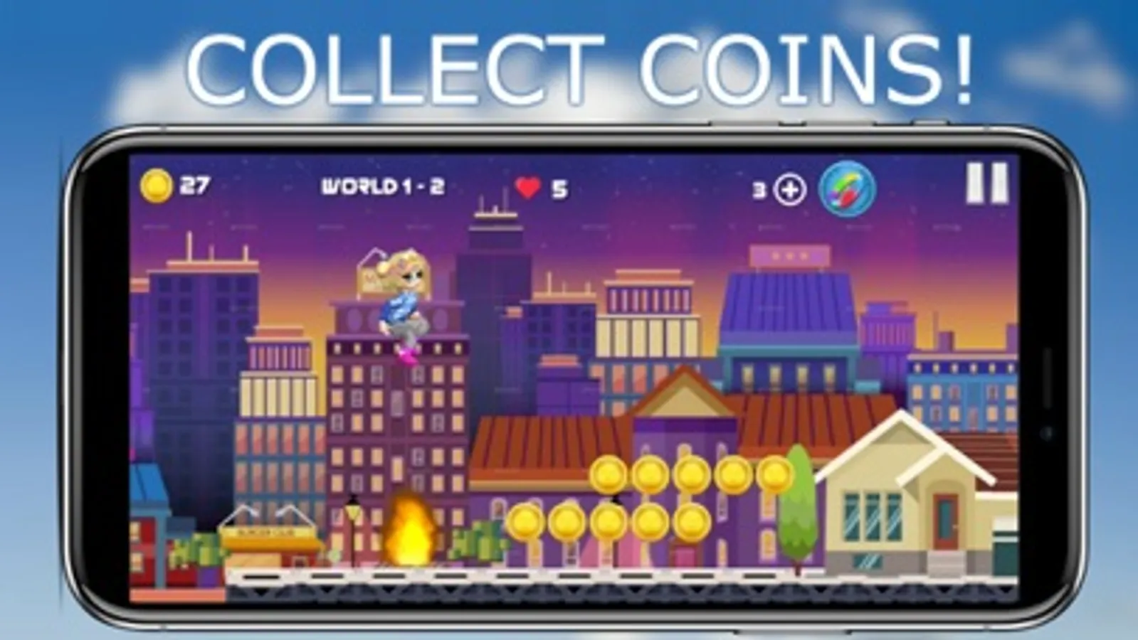 Become the main character - beautiful blond Miss Illuminate, run and jump throughout various worlds and platforms, collect golden coins and treasures, and avoid challenging obstacles and tiny enemy monsters! Explore enchanting worlds with gorgeous 3D graphics, exciting pop music and surprising challenges, and help the little Miss Illuminate pass all 50+ unique levels, reach home and beat the game!