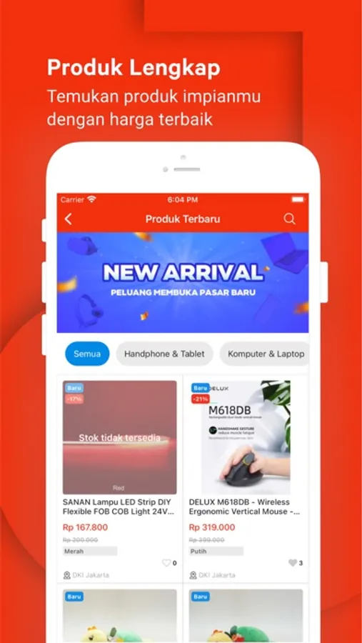 You can easily shop interesting products from trusted sellers at Jakmall, such as Smartphones, Tablets, Computers, Laptops, Televisions, Mirrorless Cameras, Men & Women's Fashion, Makeups, Kids' Toys, Household Appliances, Hobbies, and Sports Equipments, are all available at Jakmall!