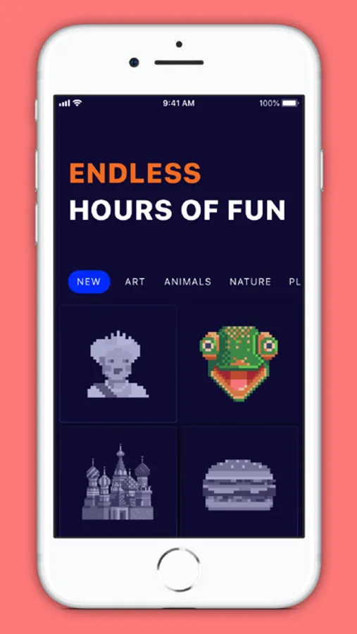 - 8bit pixel art contains hundreds of pictures to color in a theme of vehicles, animals, faces, places and many others. With more puzzles to come.
