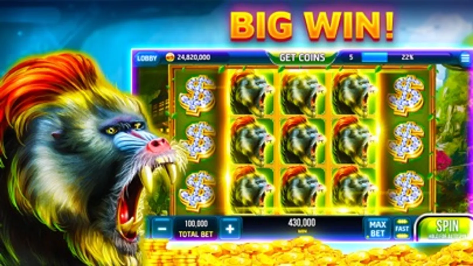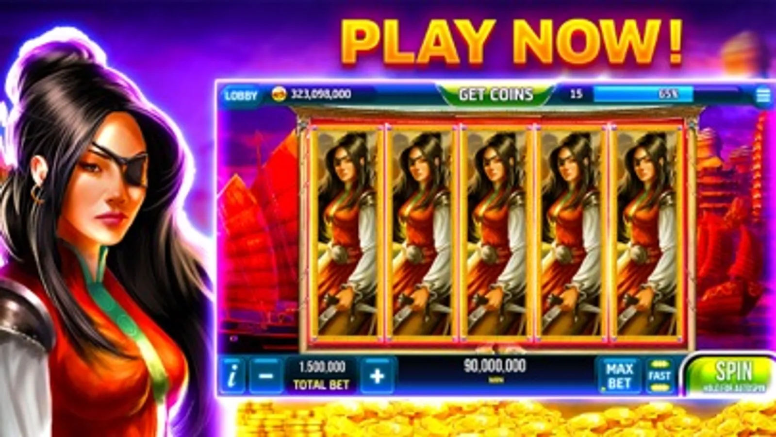 Start with 6 MILLION Credits and play more than 30+ slot machines.