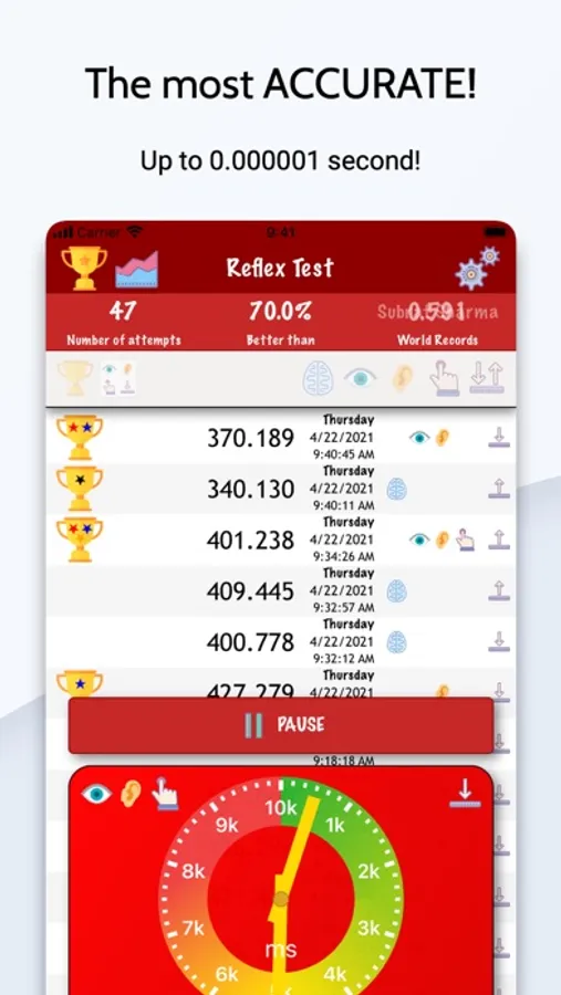 Experience reflex testing at its finest, with accuracy fine-tuned to an incredible 0.000001 second. Dive into a captivating game that tests your reaction speed and lets you compete with players from around the globe.