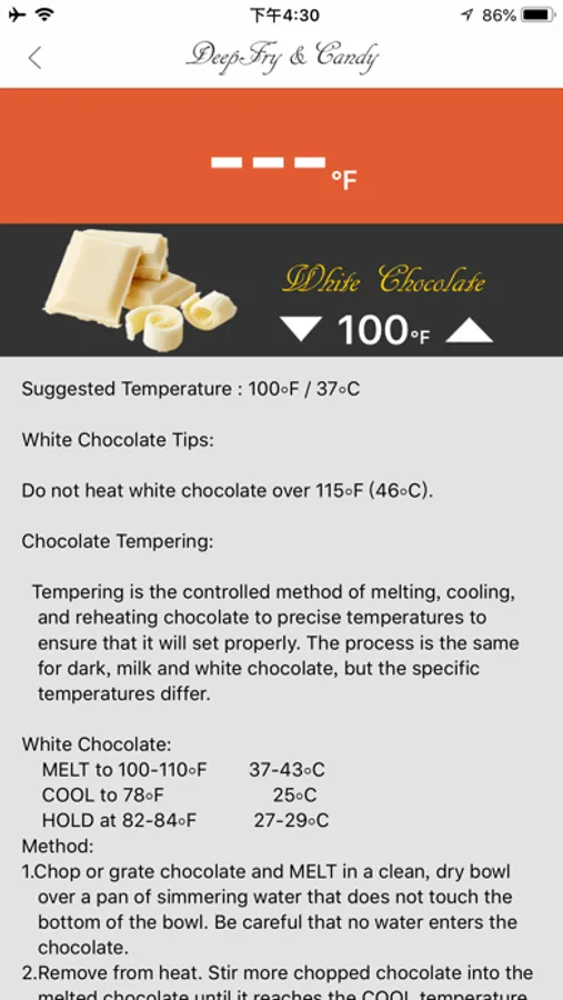 - The App can display temperature in ℃ or ℉ and is user selectable.