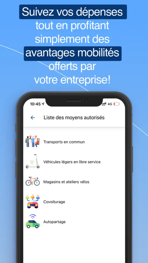 Pour vos salariés, c’est un compagnon sous la forme d’une application mobile et d’un moyen de paiement dédié. Ensemble, ils leur permettent de faciliter leurs déplacements grâce au budget spécialement pourvu pour leurs déplacements depuis et vers leur lieu de travail ou encore leurs trajets professionnels.