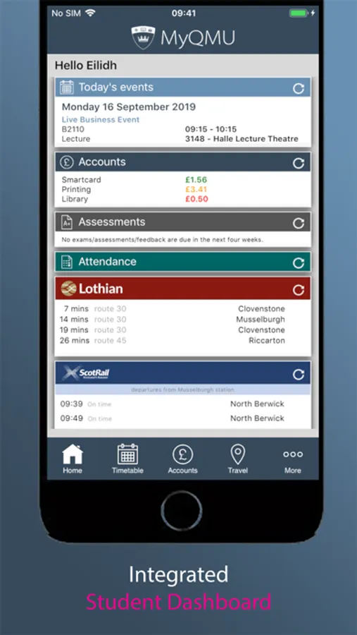 This is just some of the integrated features found within the MyQMU mobile app for the students of Queen Margaret University, others include: