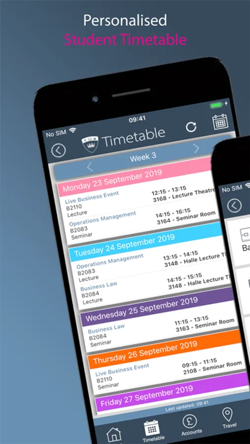 Time management solutions via our Timetable component - know where you need to be and when you need to be there.