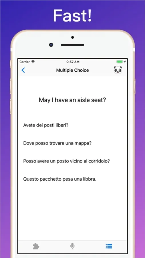 • Multiple Choice Exercises to recognize the correct translations of a phrase.