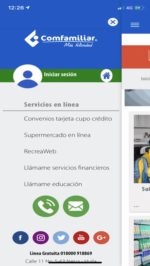 Aplicación informativa que permite a Comfamiliar Huila comunicar a sus usuarios acerca de precios horarios y tarifas de sus centros recreacionales, además esta permite consultar el saldo de cuota monetaria para sus afiliados