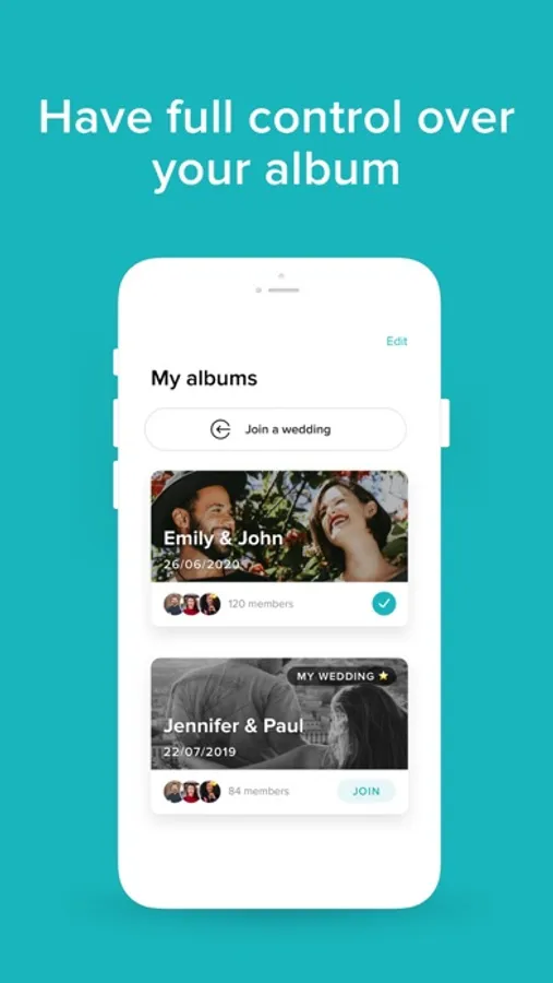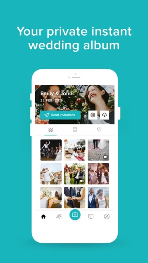 Getting started is simple, just create your album on the app, invite your friends via phone or email, and start collecting photos and videos from all of your wedding events.