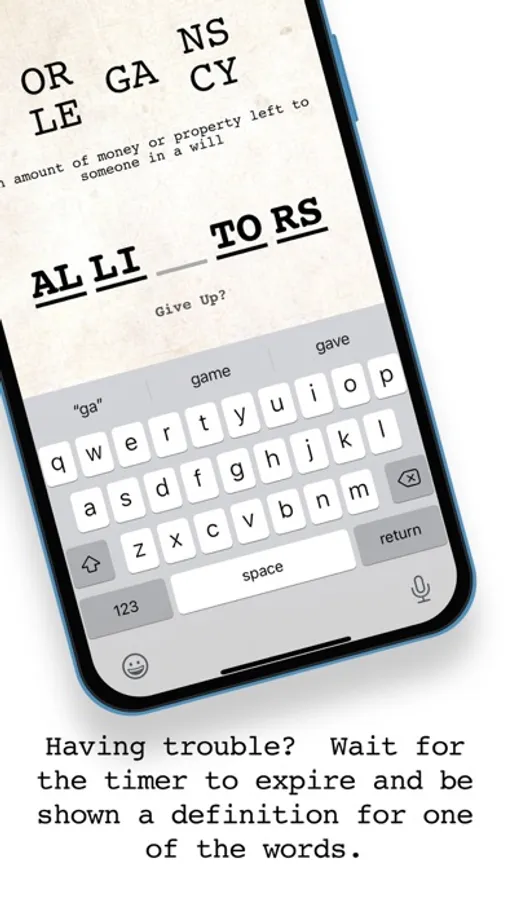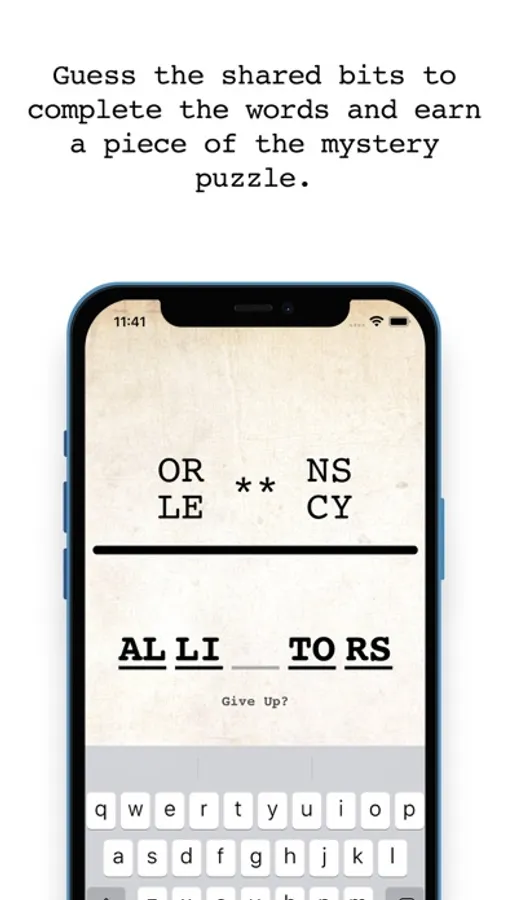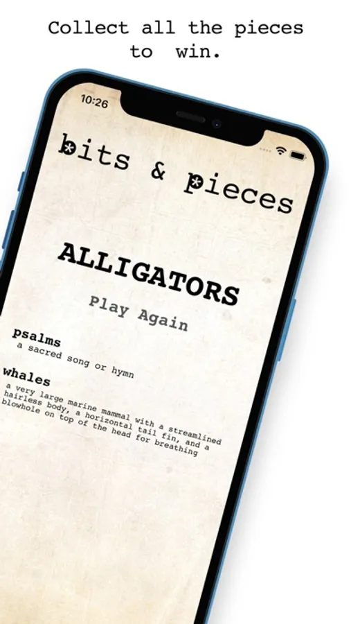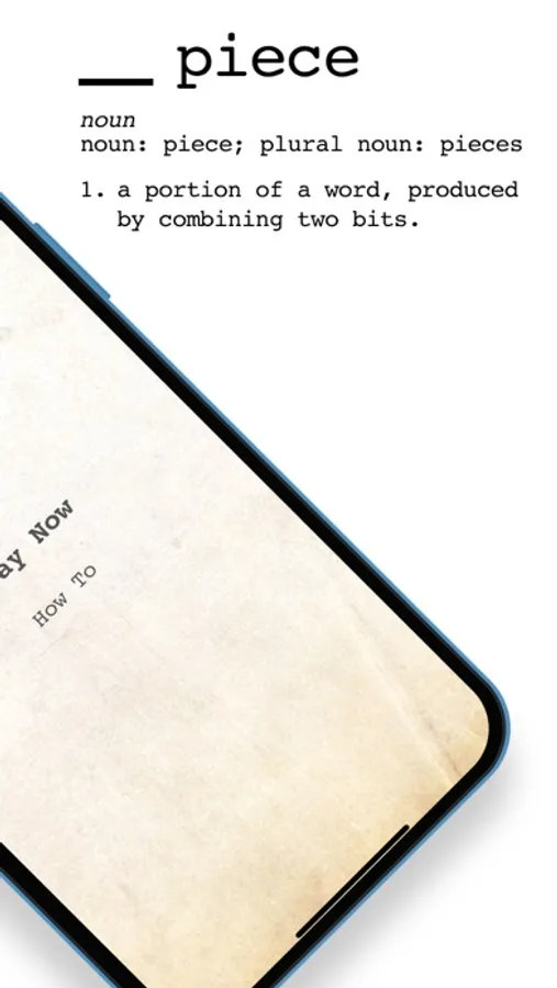 Bits & Pieces is a new kind of word game that not only entertains but educates. Guess the shared bits to complete the words and earn a piece of the mystery puzzle. Having trouble? Wait for the timer to expire and be shown a definition for one of the words. Whether you need to kill a couple of minutes waiting for the elevator or a couple of hours at the DMV, Bits & Pieces is the answer.
