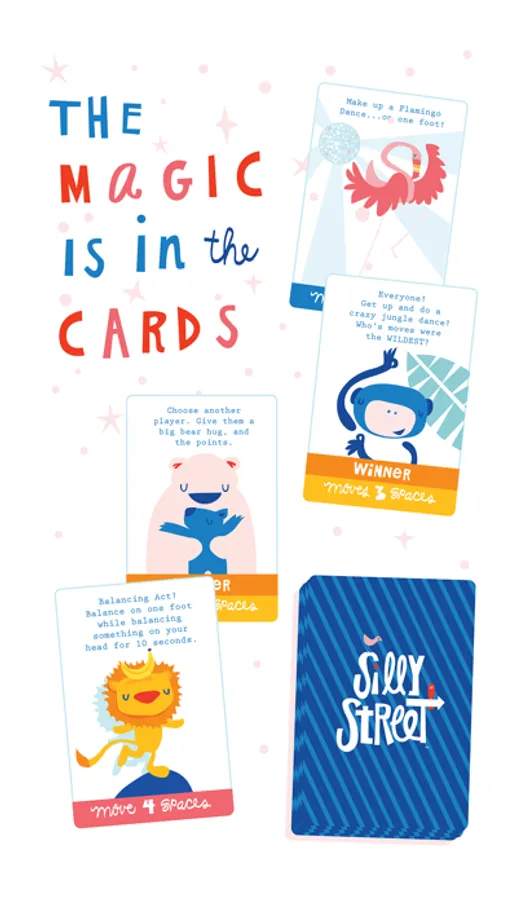 From the creators of the award-winning Silly Street board game, comes an exciting new app: Silly Street Learn & Play. A pass n’ play game for the whole family, this app helps kids build creativity, grit, empathy, curiosity, bravery & communication through movement, song, storytelling & major silliness.