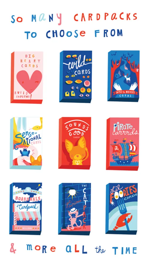 - Additional Card Packs can be purchased to keep play fresh and to help kids with specific developmental needs
