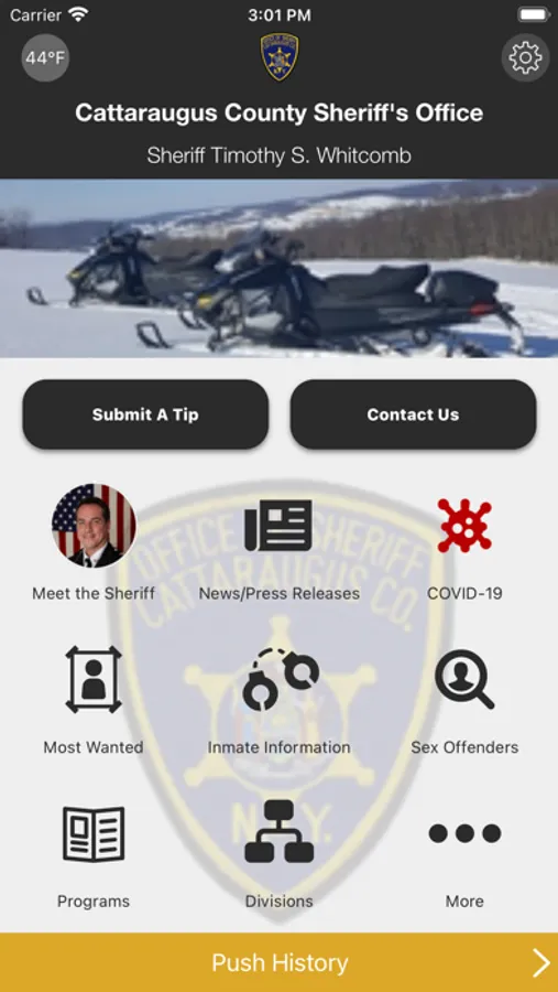 improve our communication with Cattaraugus County residents, businesses, and visitors. Information will include, but not be limited to contact information, news, emergency alerts, local weather, inmate search, sex offenders, and Most Wanted. Citizens may submit a crime tip directly through the app, as well as see and share social media posts. By empowering people through technology, the Cattaraugus County Sheriff’s Office will be able to better ensure the public safety of our county.