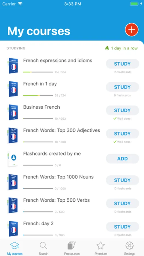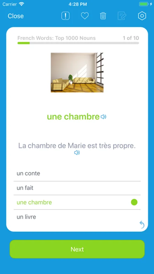 Flashcards are constantly rising in popularity, due to the fact that they combine entertainment with learning. If you aim to know and speak French fluently, for studies, work or in order to impress native speakers with your knowledge during the next trip to France - this app is perfect for you!