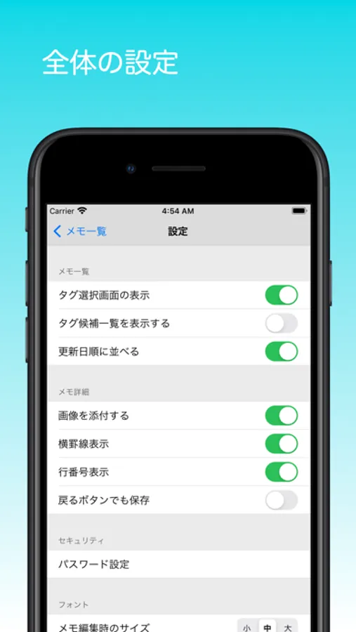 メモ一覧の長押しでファイルに保存やメール送信などができます。
