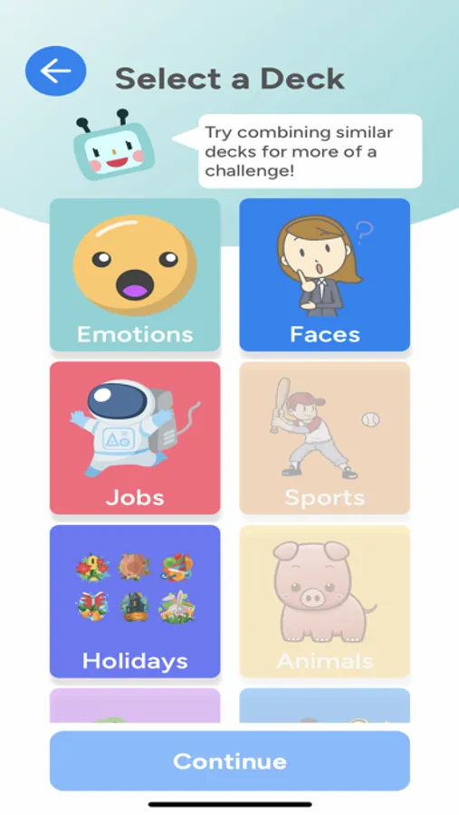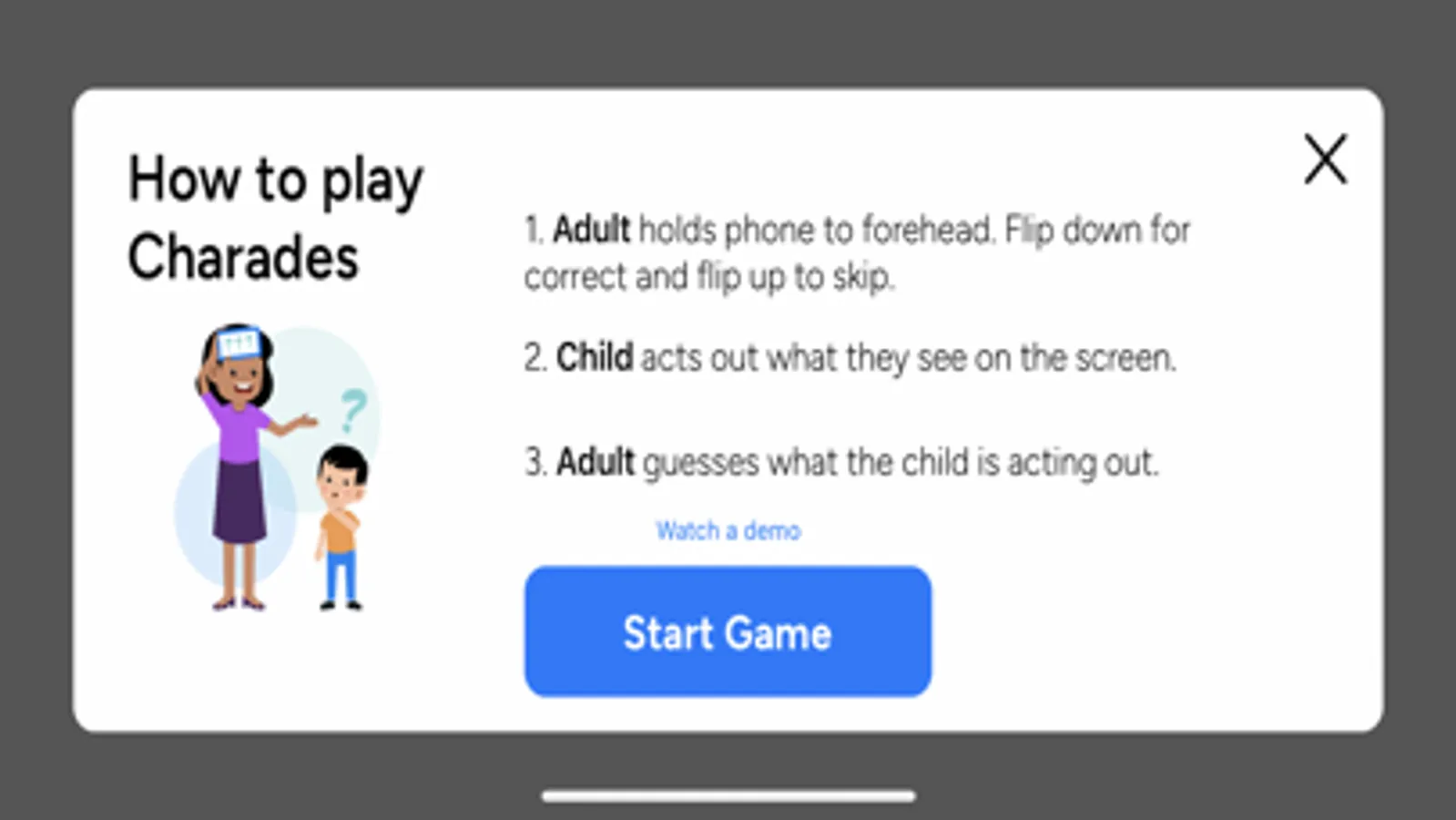 Choose between numerous different decks and play this exciting charades game on your phone with your kids, and optionally, help contribute to research on developmental delay by sharing your videos with the research team.
