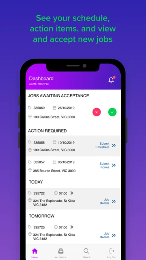 • One-click job accept/decline