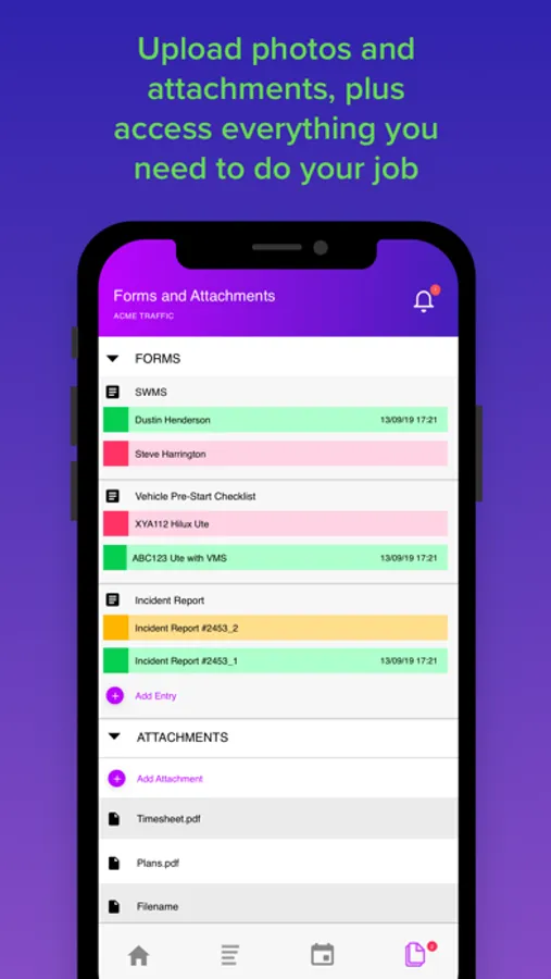 • Access important job documents such as SWMS, Plans, and Permits