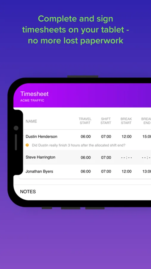• View job details including other crew members, individual shift notes, equipment and resources