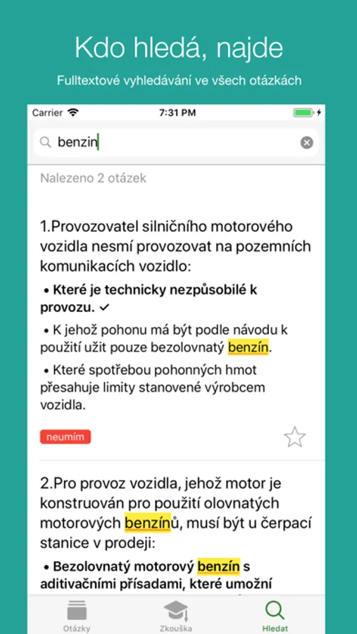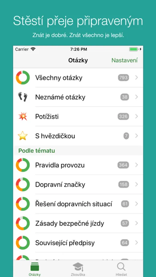 Často se ptáte na rozdílný celkový počet otázek v aplikaci pro jednotlivé skupiny v porovnání s webem Ministerstva dopravy ČR. Rozdíl je způsoben tím, že na webu ministerstva je uveden počet všech otázek za všechny skupiny dohromady.