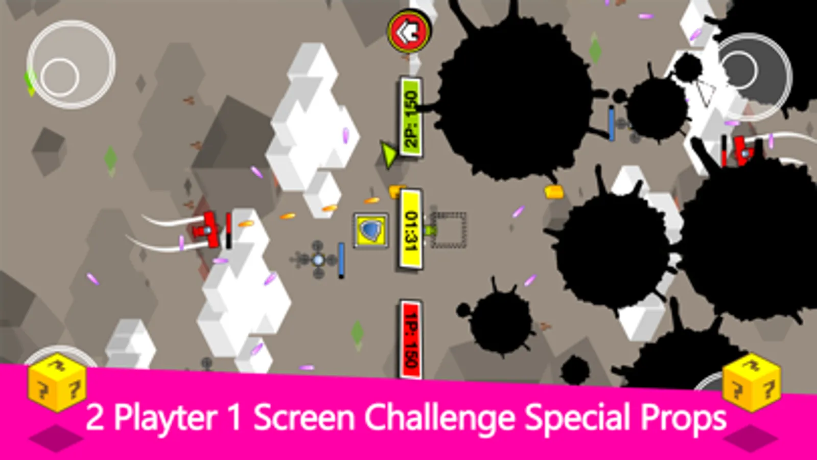 In the 2 player arena mode, you can play with friends on the same equipment, get props interfere with your opponent control. Try to get higher score.