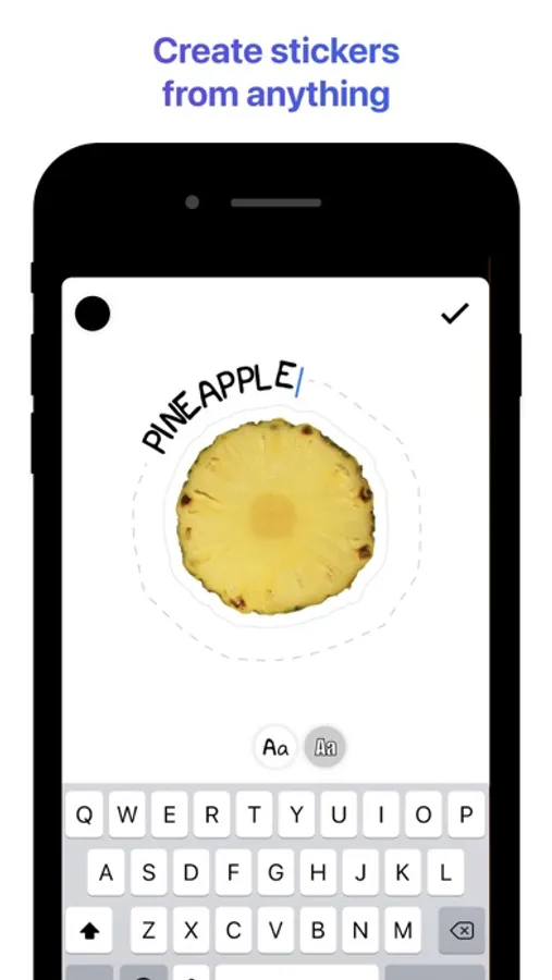 Take any object and turn it into a sticker - no cutting out with your finger necessary. Add text around the object and customize it to make it your own.