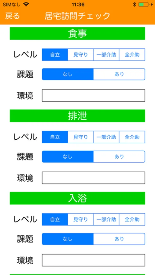 ○「居宅訪問チェックシートアプリ」は、普段は紙で行われているチェックを、iPhoneやiPadのボタンを押すのみで、手軽にペーパーレスで記録をすることが可能です。