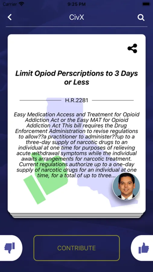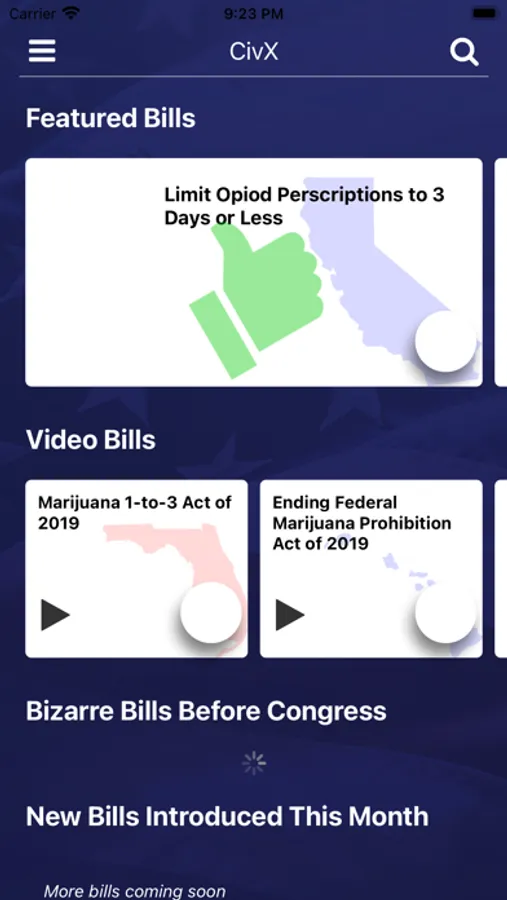 Introducing CivX, an easy-to-use mobile app that offers an intuitive, interactive and fun way to discover legislation in Congress, become an informed citizen and make your voice heard.