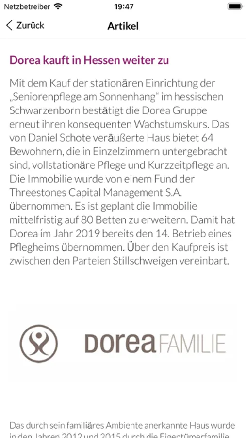 Diese App bietet allen Nutzern die neuesten Informationen aus dem Unternehmensverbund, aus den Pflegeeinrichtungen und aus der Konzernzentrale.