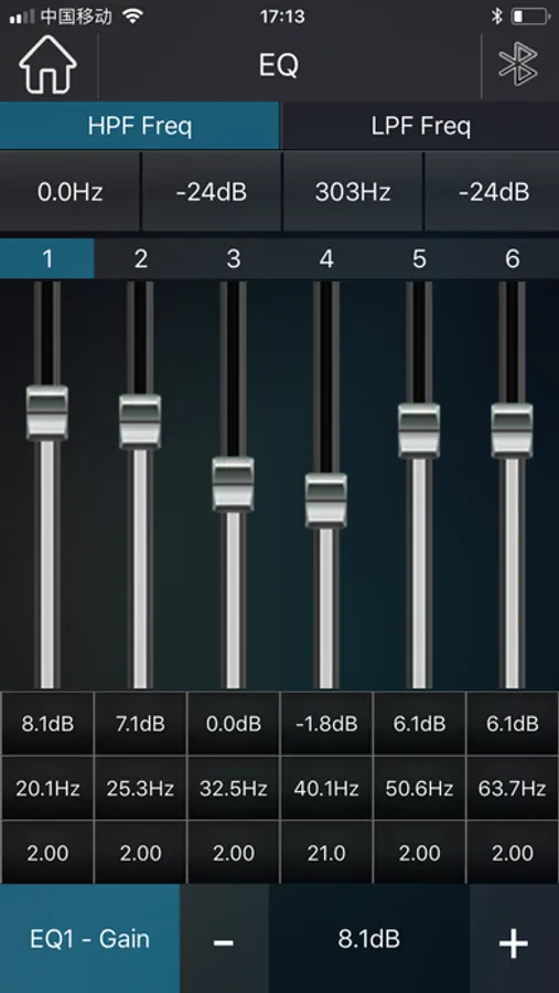 A convenient professional subwoofer tuning App, using Bluetooth 4.0, Bluetooth support dual-mode tuning, support six EQ tuning, support gain, frequency, Q value and high-pass debugging, built-in six sound mode. You can play music with Bluetooth, but you must first connect the sound board and play the music with Bluetooth.