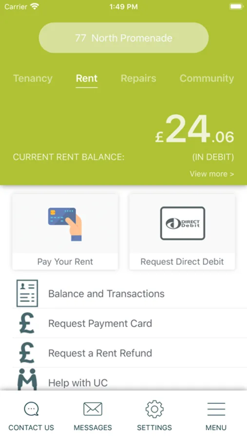 Making a rent enquiry, request a refund, DD or payment card
