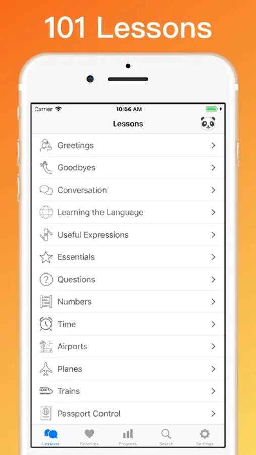 • 101 lessons for real-life situations like taking Taxis, arriving at a Hostel or asking about the Weather. Fun lessons such as Flirting and Swearing.