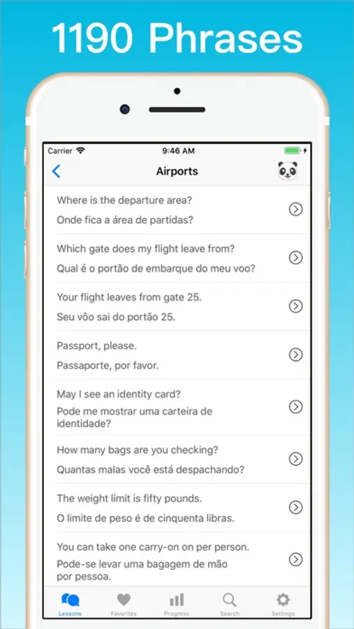 • 1,190 useful phrases such as “Can you speak slowly?” and “Where is the closest cash machine?”.