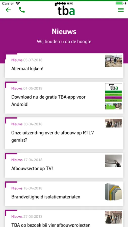 Altijd alle richtlijnen en het laatste afbouwnieuws binnen handbereik hebben? Download nu de gratis TBA-app!