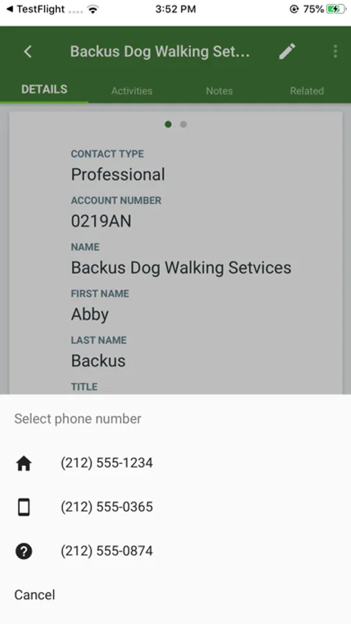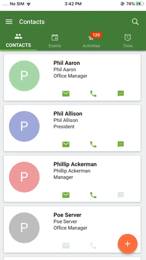 Gain complete access to your contacts and all their details from your mobile device. View current activity and create time cards, phone calls, to do's and notes for your contacts.