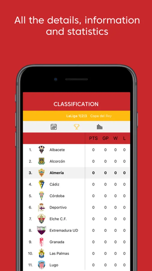 - Calendar, live results and classification: Check all the key dates and timetables on the official calendar for all competitions for UD Almería: LaLiga Hypermotion and Copa del Rey. Get the live results from every game on match day, with the league table fully updated at all times. Stay in touch every second with what is happening in every game with live updating information.
