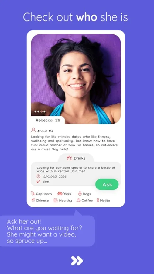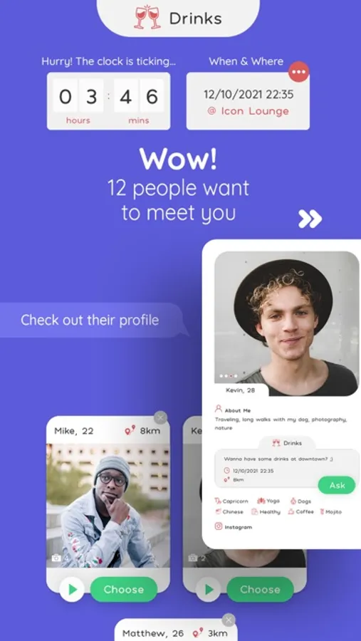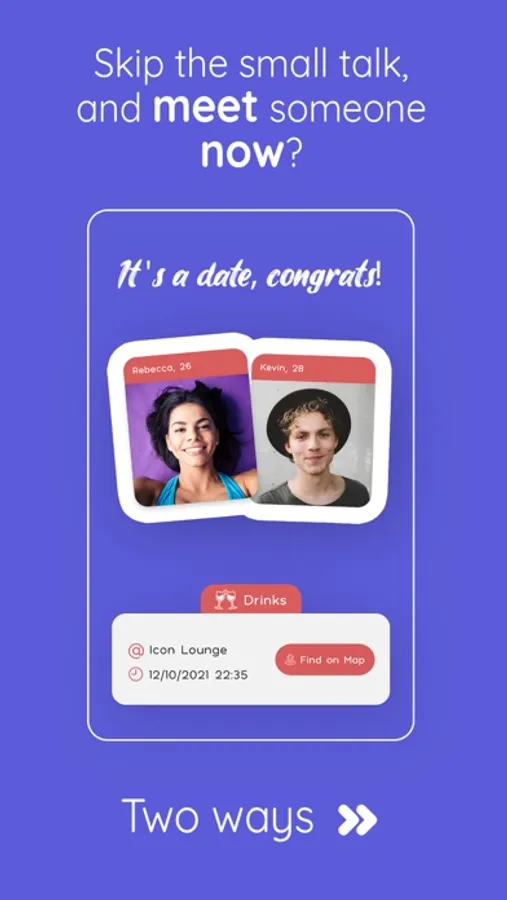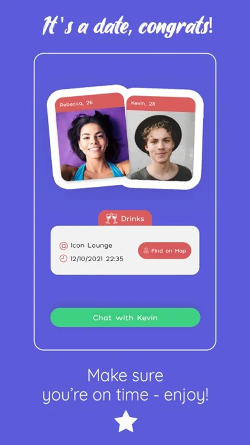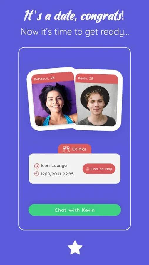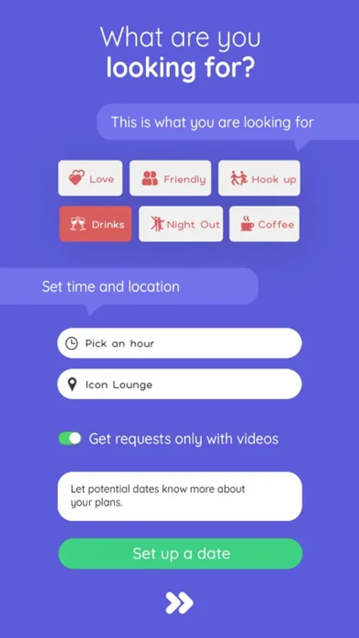 Simply choose whether you want to set up your date, or join one, and review or make 10-second video pitches of the perfect date.