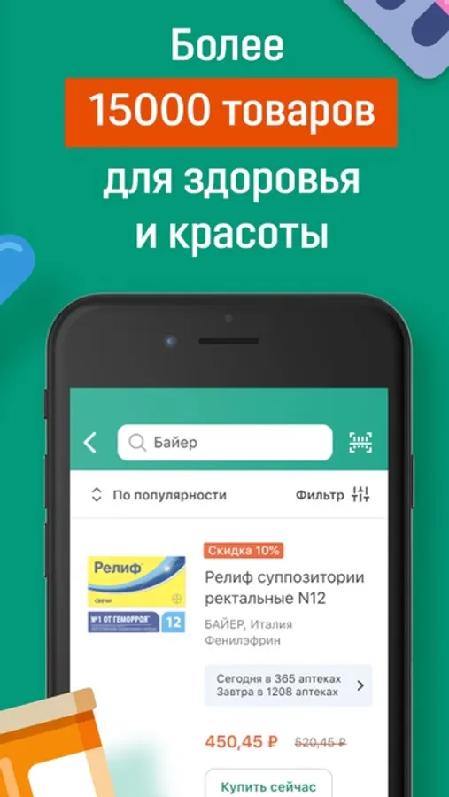 Бронируйте нужные лекарства в приложении за 1 минуту и забирайте их в удобной аптеке