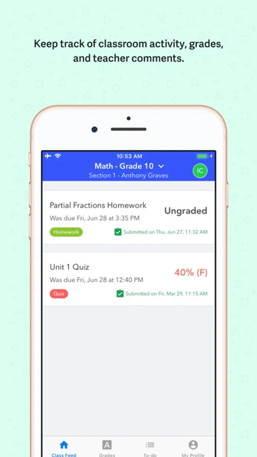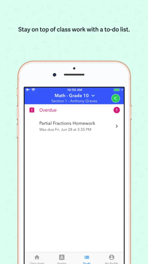 • Keep track of class activity, quizzes and assignments with a to-do list