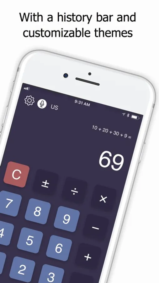 - Advanced calculator actions: percentages, Square root, П, e, logarithm, sin, cos, tan