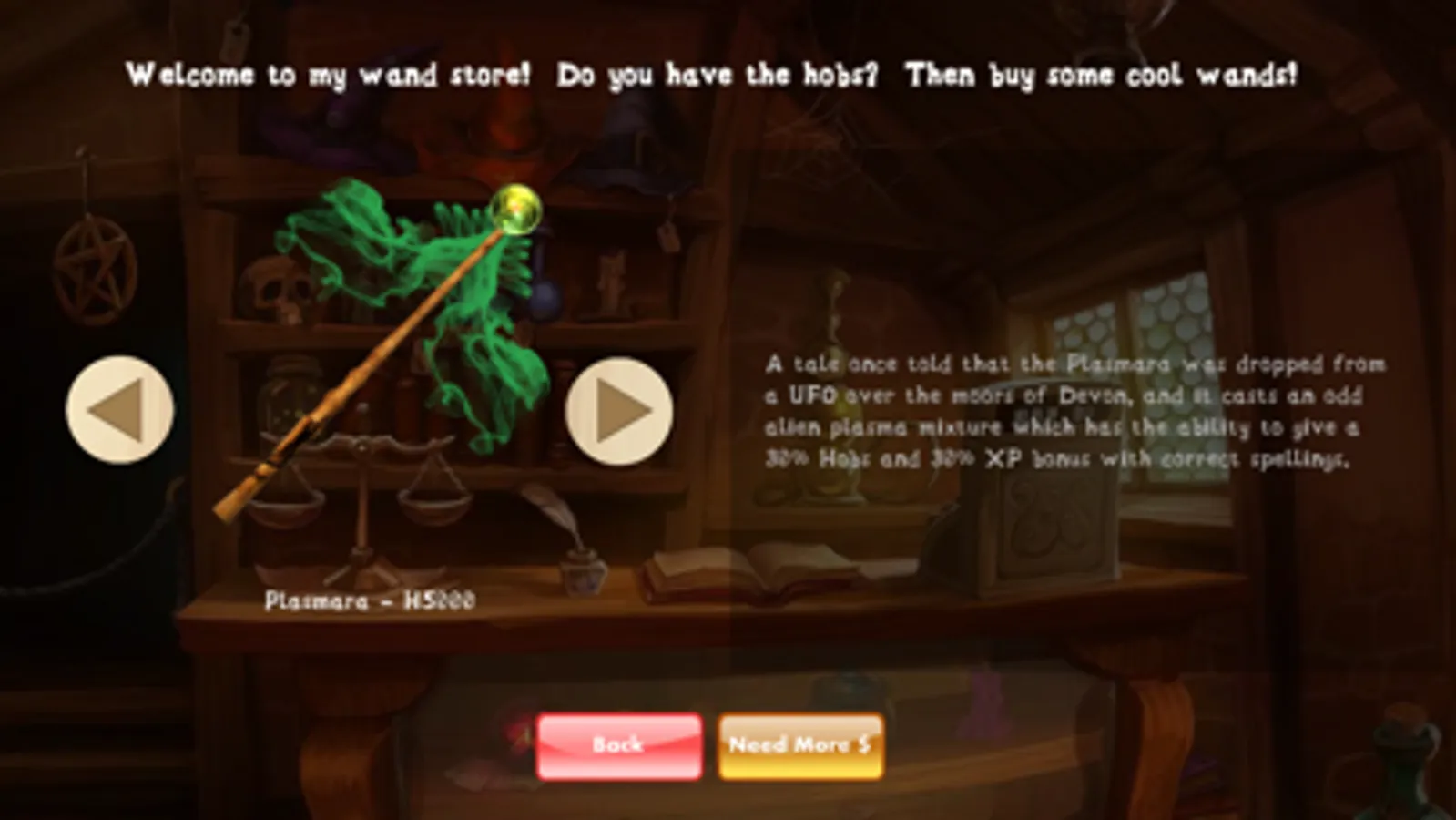 - Spend your hard earned 'Hobs' in the wand store, and access cool new wands with unique abilities, such as to gain more experience or warp time!