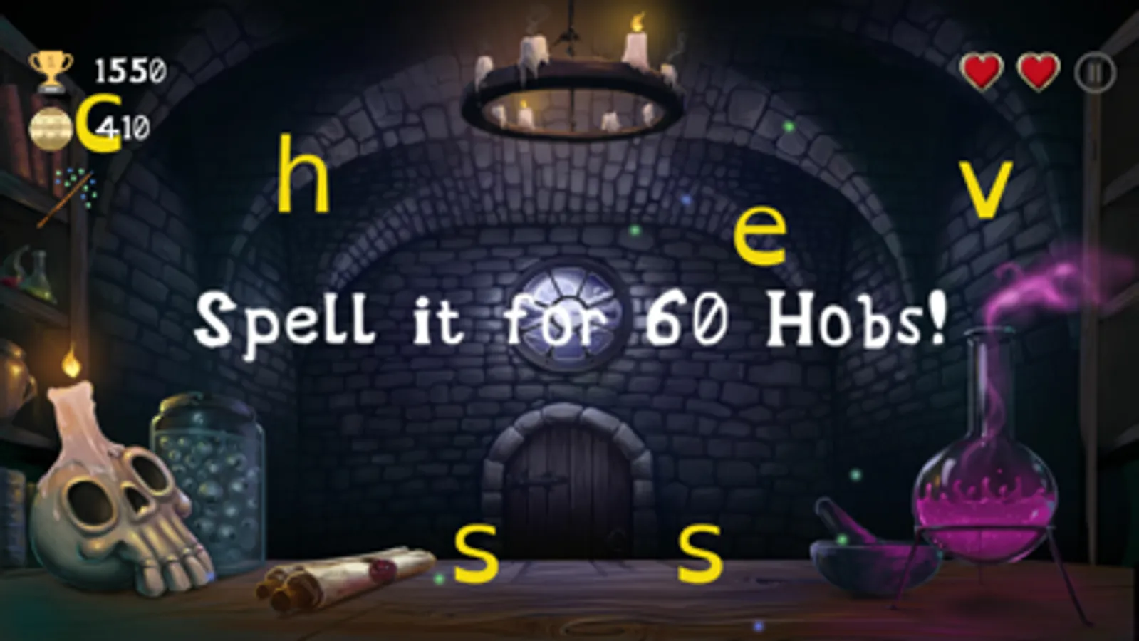 - Swipe the correctly spelled words and avoid the incorrectly spelled words to earn experience and 'Hobs'