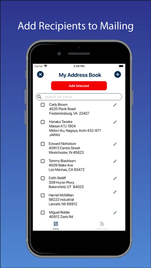 Add a recipient’s name and address, or choose a previously saved address in the app.