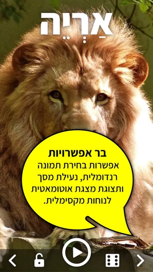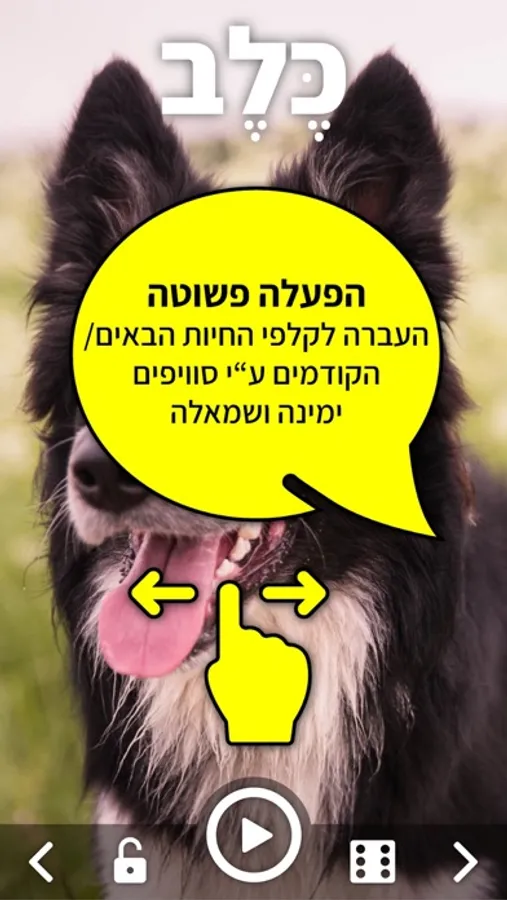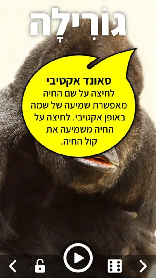 השמעה חוזרת של שם החיה בעברית - לחיצה על שם החייה המנוקד תשמיע בשנית את שם החייה בשפה העברית