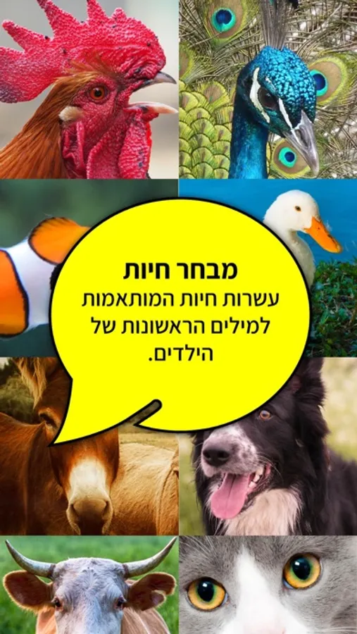 אלף - קולות של חיות הוא יישומון חינמי ובסיסי המסייע לילדים צעירים ופעוטות ללמוד ולשנן את עולם בעלי החיים ע"י שימוש בתמונות איכותיות, קולות בעלי החיים ושם החיה בעברית.
