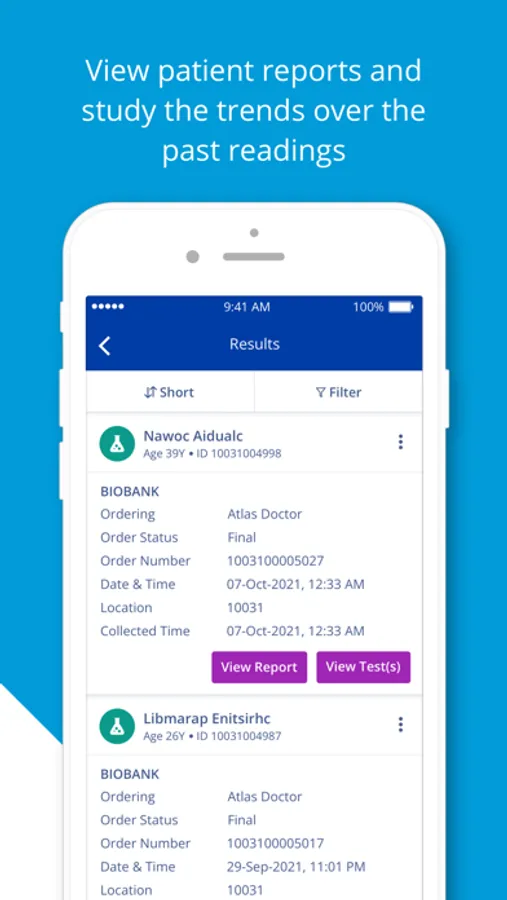 • Search for results or Patients