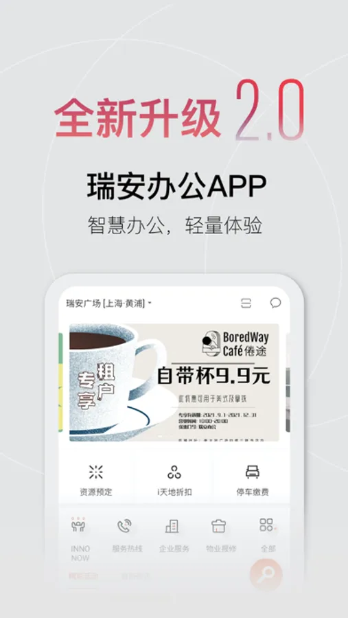 瑞安办公APP(原名:INNO PLUS)是瑞安房地产旗下办公业务平台--瑞安办公(SHUI ON WORKX)打造的数字化办公软件。为瑞安办公旗下办公楼项目、灵活空间产品及合作平台会员提供更多优质的空间解决方案及多元化的办公生态服务。