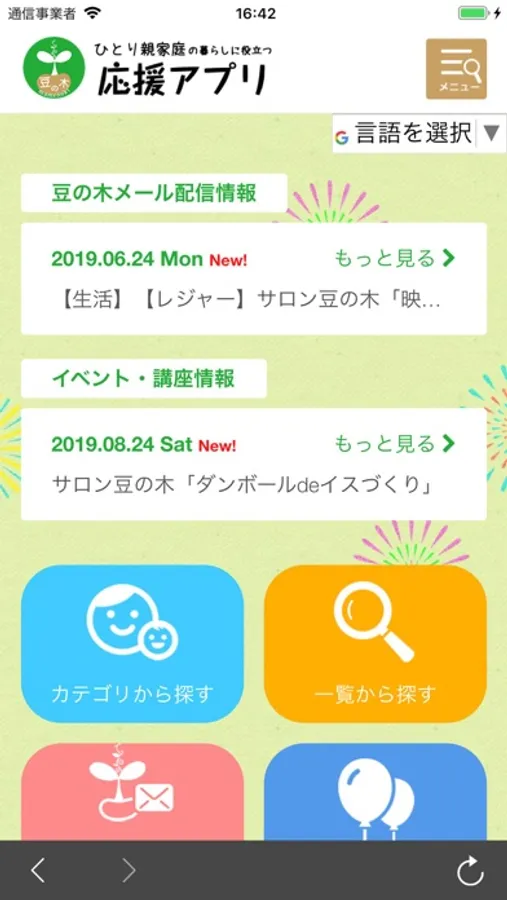 ひとり親家庭限定 豆の木メール配信情報やイベント・講座開催情報の閲覧