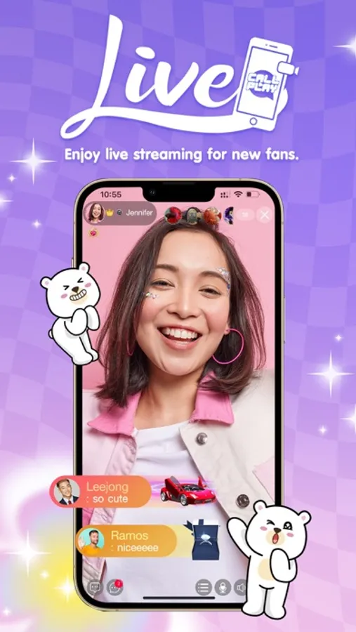 CallPlay, lovey pink bear application, which all included entertainment online in one platform that you can find new friends here. Pretty girls, lovely boys and also stars are ready for streaming for you and talk real time now! Even personal chat or private video call are provided for you.